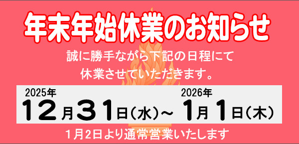 年末年始休業のお知らせ